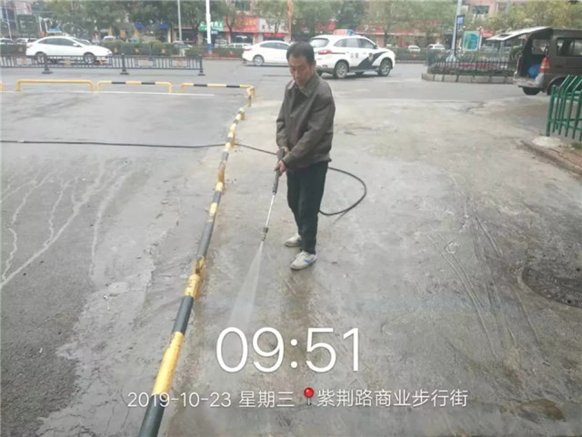 正合公司资产部安排疏通和保洁人员对紫荆路步行街东、西两边污水管网清理及清扫街面垃圾及卫生死角,保持紫荆路步行街街面和周边环境干净整洁。