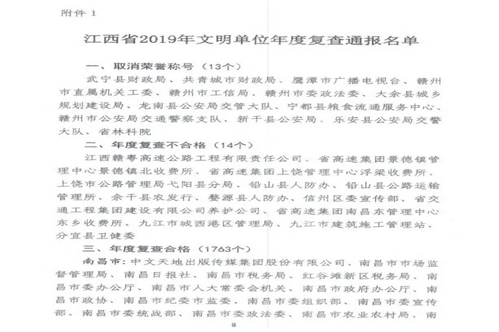 【喜报】金开集团顺利通过江西省2019年文明单位年度复查