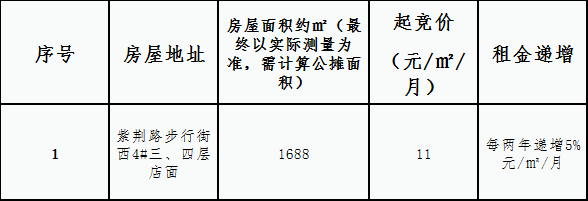 紫荆路步行街西4#三、四层店面 租赁竞拍公告