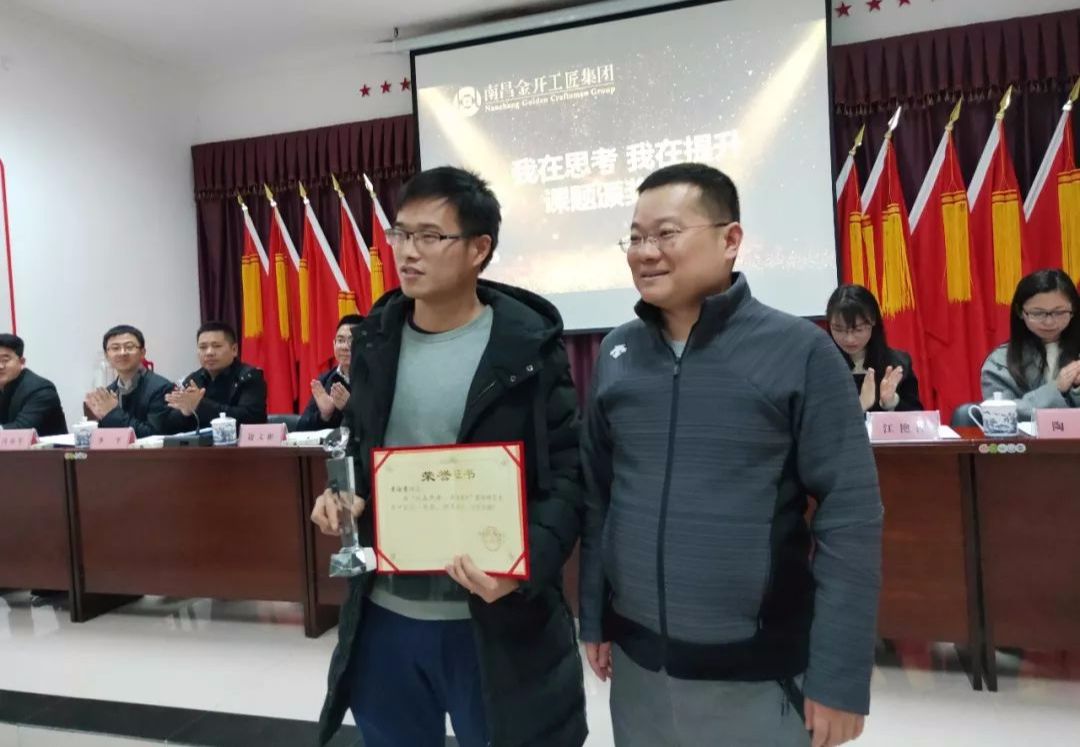 会议首先举行了“我在思考、我在提升”课题竞赛颁奖仪式,接着听取了工匠集团三位高管及副部长以上员工述职汇报。听取汇报后,工匠集团党支部书记胡应庚当场宣布述职评分结果。、