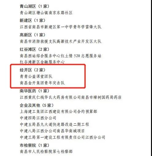 近日,共青团南昌市委、南昌市创建青年文明号活动组委会颁布了《关于命名2018—2019年度南昌市市级青年文明号的决定》(洪青联发〔2021〕17号)。其中,金开集团团委青年突击队被评为2018—2019年度南昌市“市级青年文明号”。