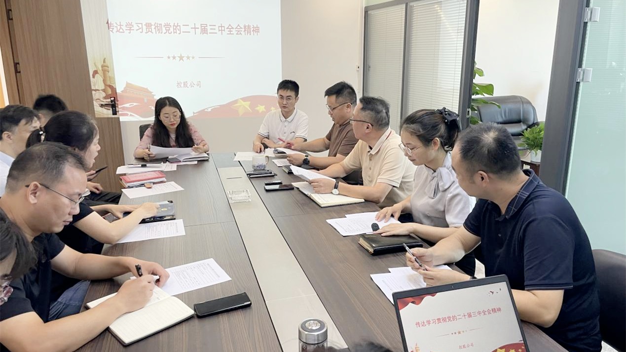 7月29日上午,控股公司党支部组织召开专题会学习贯彻党的二十届三中全会精神。会议提出,党的二十届三中全会具有继往开来的里程碑意义。作为国有企业,要紧紧围绕全面建成高水平社会主义市场经济体制这一目标,切实增强改革的政治自觉、思想自觉、行动自觉,聚焦制约高质量发展的突出问题,深入推进国企改革。既当促进派、又当实干家,紧跟时代步伐,以市场需求为导向,灵活调整和优化企业的发展战略规划,不断创新文旅及贸易业务模式,推动企业各项改革任务落地见效。