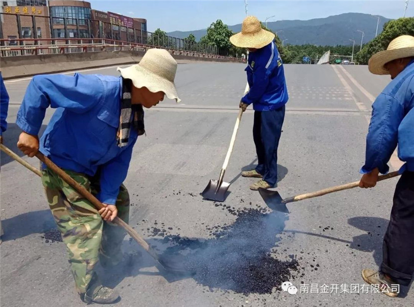 期间,经过大范围的排查,巡查人员发现枫林大街路面上存在小部分坑洞及人行道板破损的现象,对过往车辆造成一定的安全隐患,管护公司第一时间组织人员运用沥青道路综养设备对枫林大街、经开大道等主干道道路坑洞进行沥青热料填补处理。